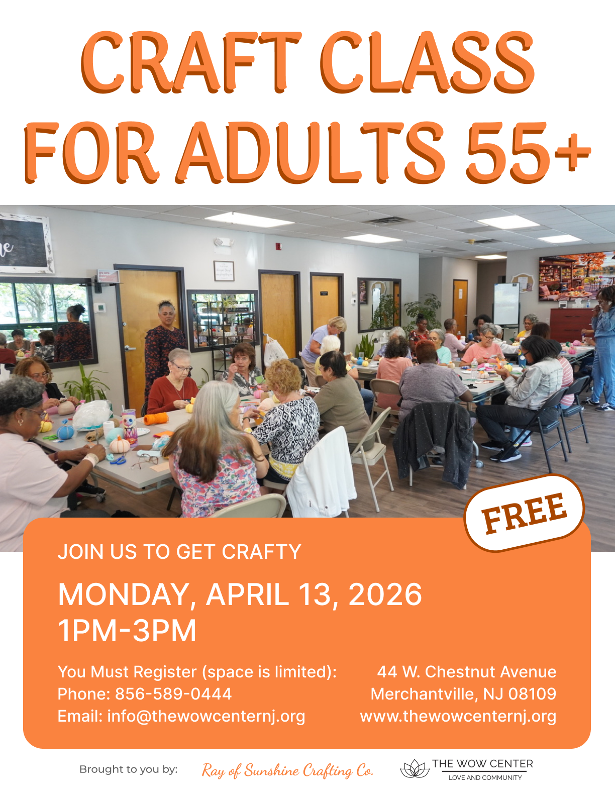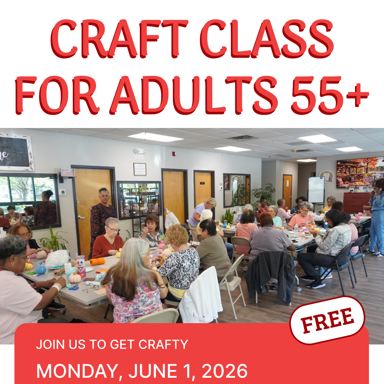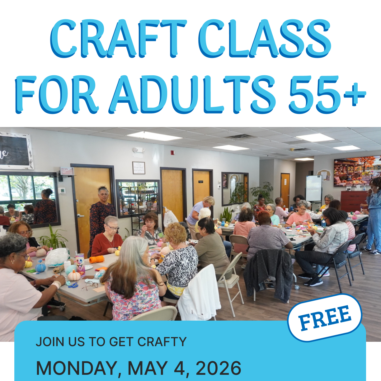 Come spend a joyful afternoon crafting, connecting, and creating something beautiful, together. Our 55+ Adult Craft Class is all about community, friendship, and creativity! Whether you're a lifelong crafter or just curious to try something new, this beginner-friendly class is a welcoming space for all.